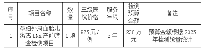 因工作需要,我院拟对孕妇外周血胎儿游离DNA产前筛查检测项目服务价格进行市场调查,欢迎符合资质条件的医疗机构参与报价,供我院采购前参考。
